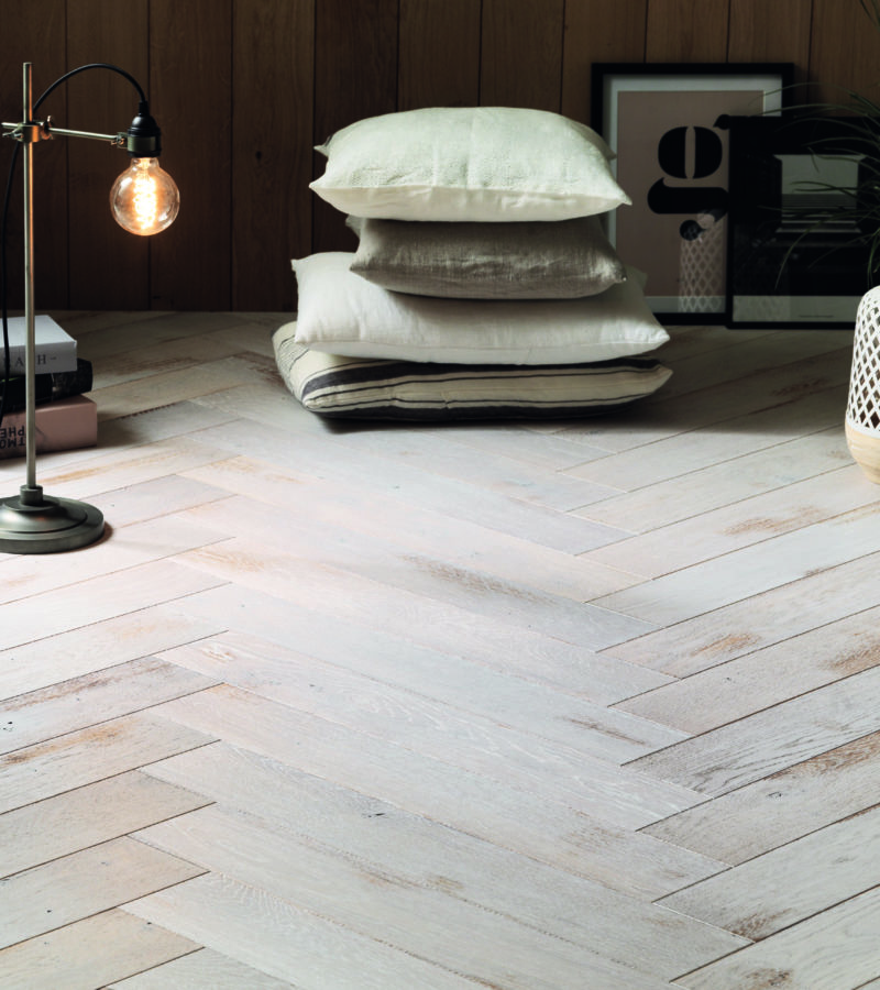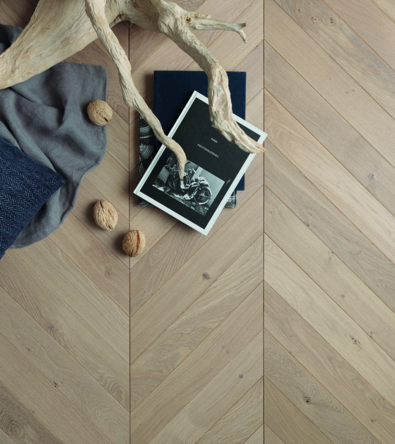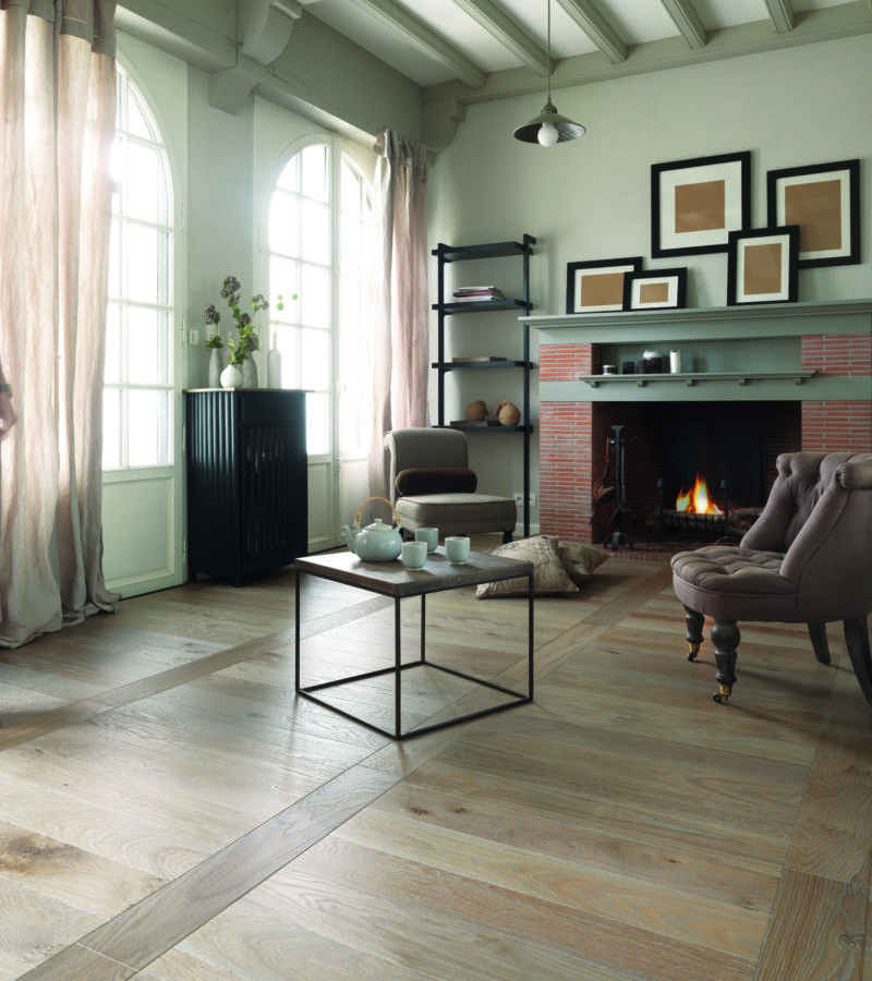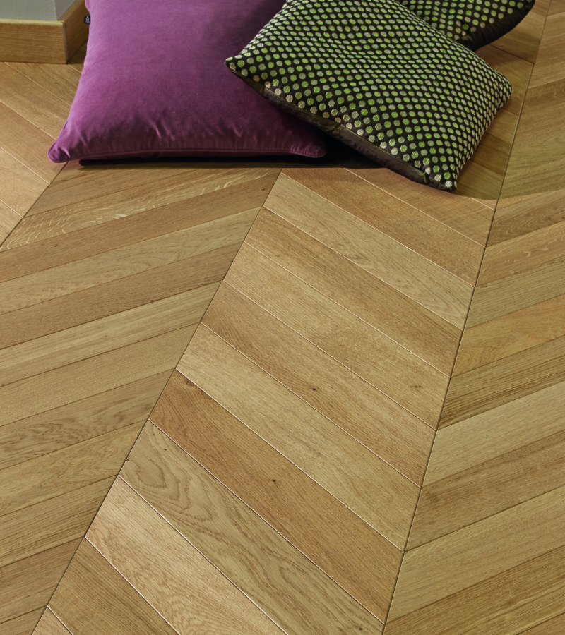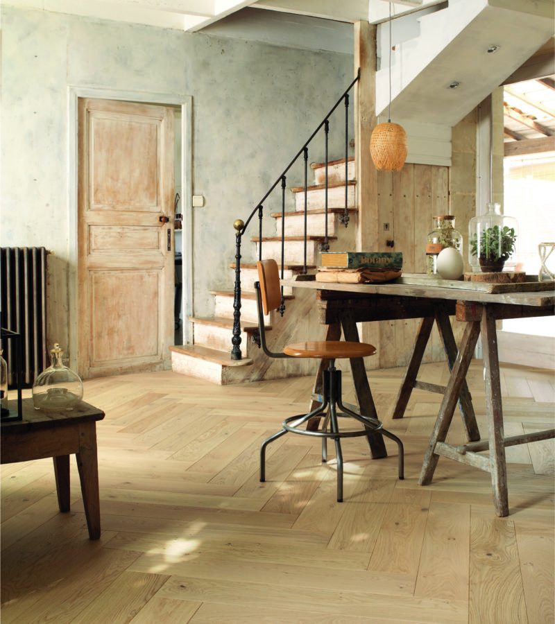 La tendance graphique s’affirme décidément dans tous les domaines ! Ici, elle rythme le design de ce parquet contrecollé à motif point de Hongrie qui personnalise complètement le sol. Son éclat naturel se dévoile en douceur, grâce à une finition satinée, pure et sobre. Donnez force et caractère à votre pièce avec Panaget !
