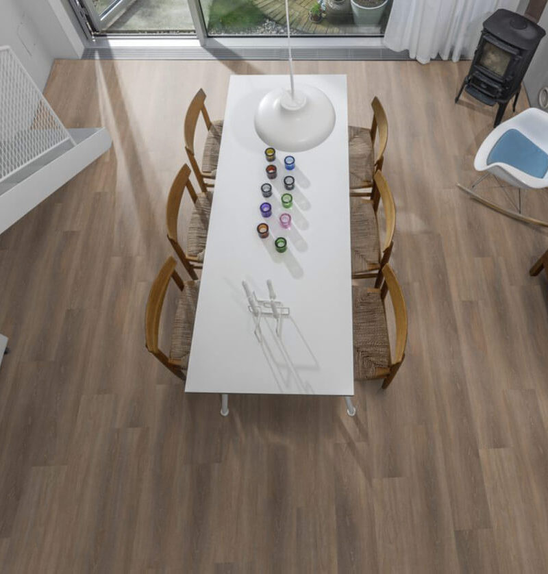 Kährs a allié sa connaissance du bois au vinyle et cela donne une imitation parfaite du bois.