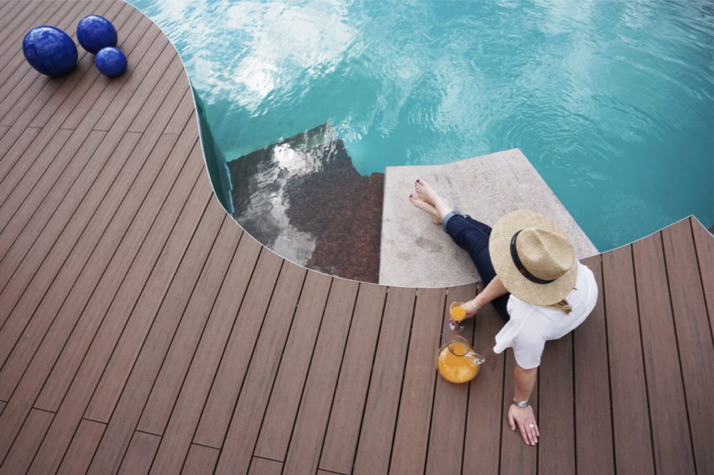 Terrasse en bois autour d’une piscine